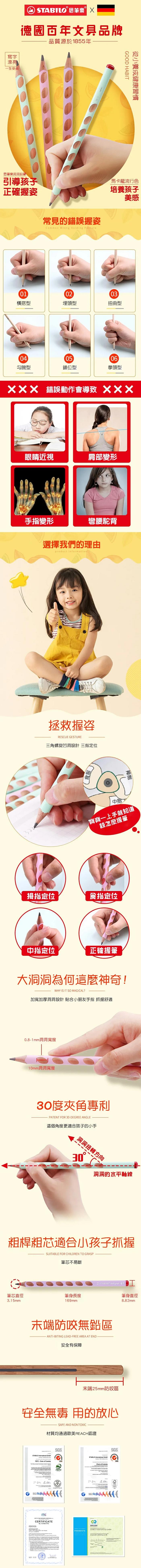 Stabilo思筆樂洞洞鉛筆粉彩系列左手用/HB/粉綠色