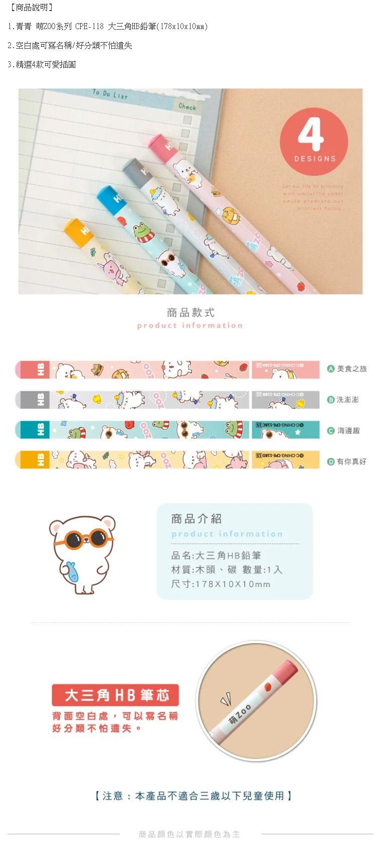 ◎青青 萌ZOO系列 CPE-118 大三角HB鉛筆(178x10x10mm)