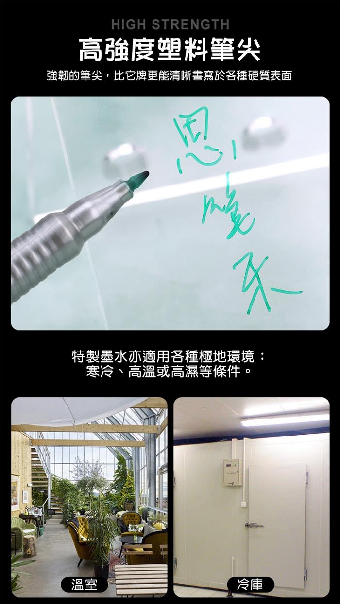.強韌筆尖,可清晰書寫於各種硬質表面