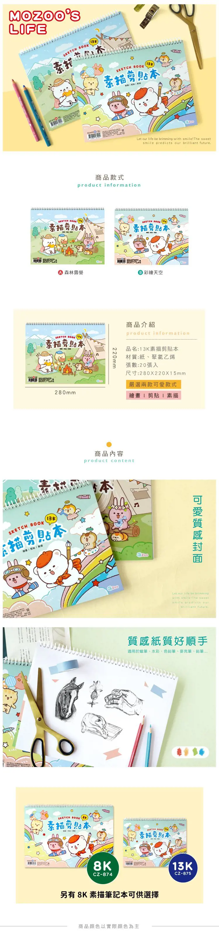◎適用:蠟筆、色鉛筆、麥克筆、水彩、鉛筆...【商品說明】 1. 青青 萌ZOO系列 CZ-875 13K素描剪貼本(280X220X15mm)