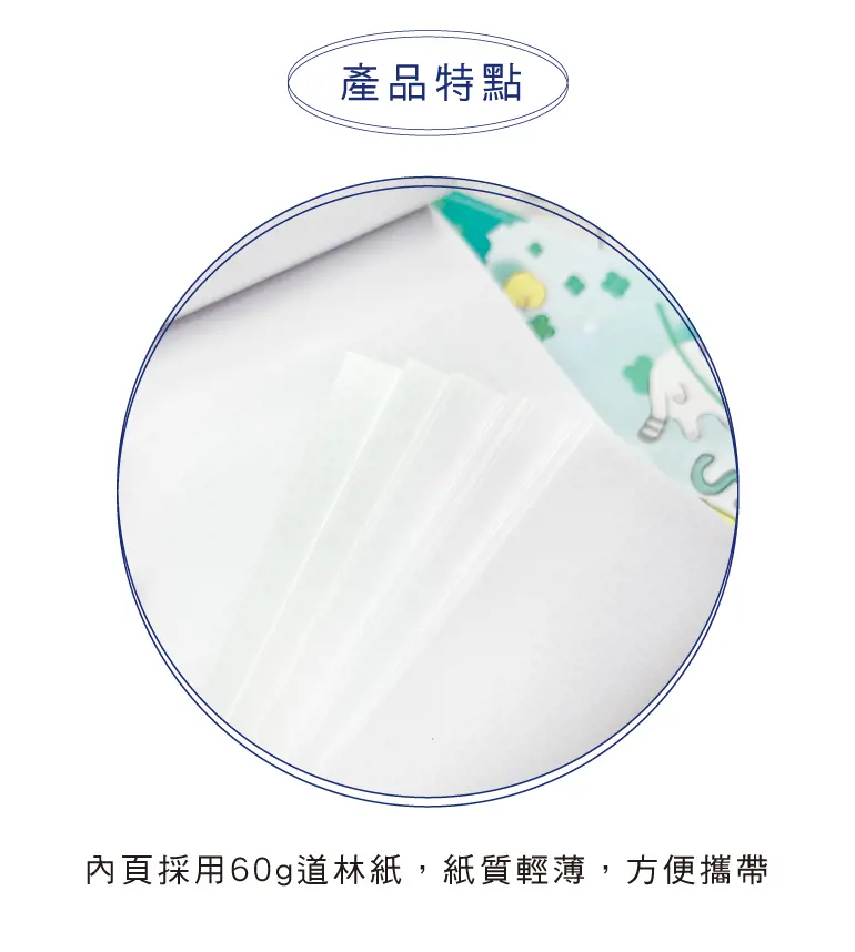 § 內頁採用60g道林紙,紙質輕薄,方便攜帶。