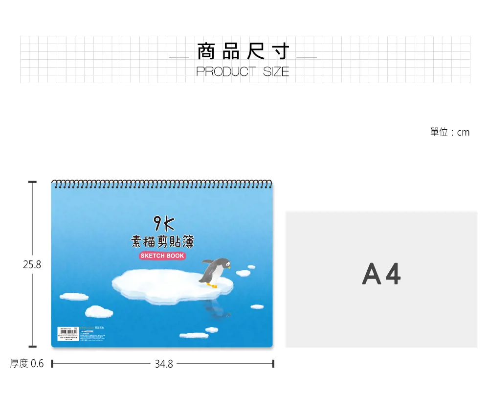 (特價)9K圈裝素描剪貼簿浮冰企鵝