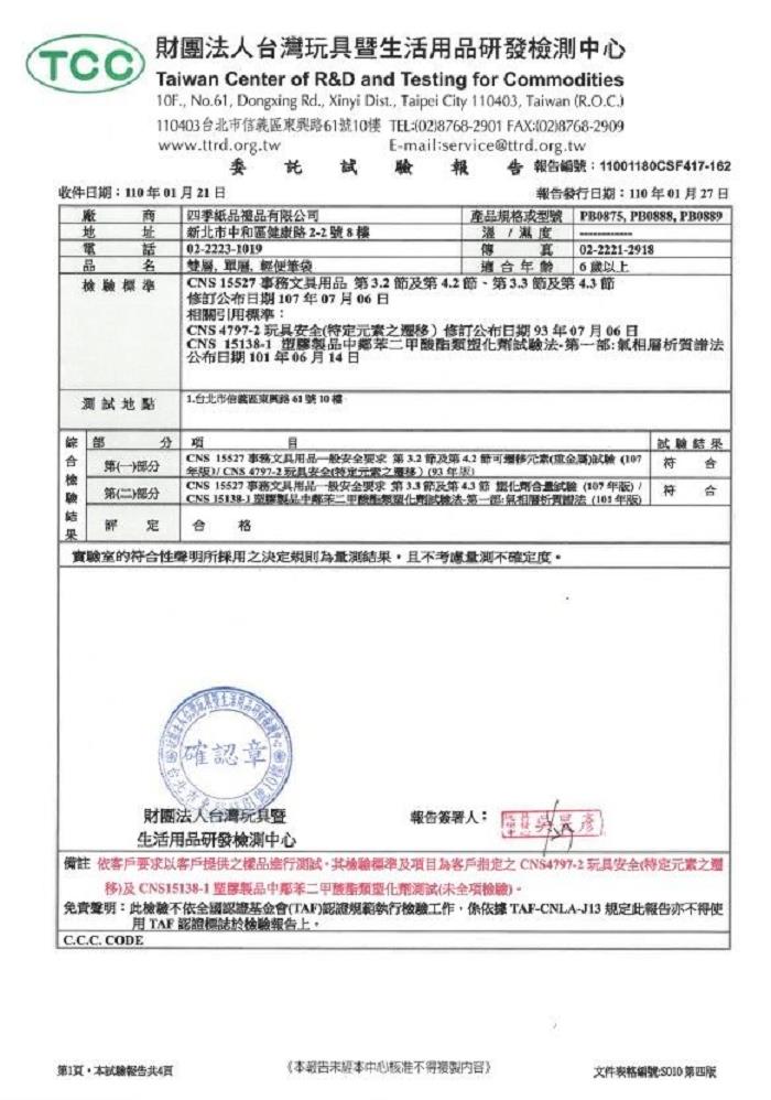 § 產品符合重金屬、塑化劑檢驗標準。