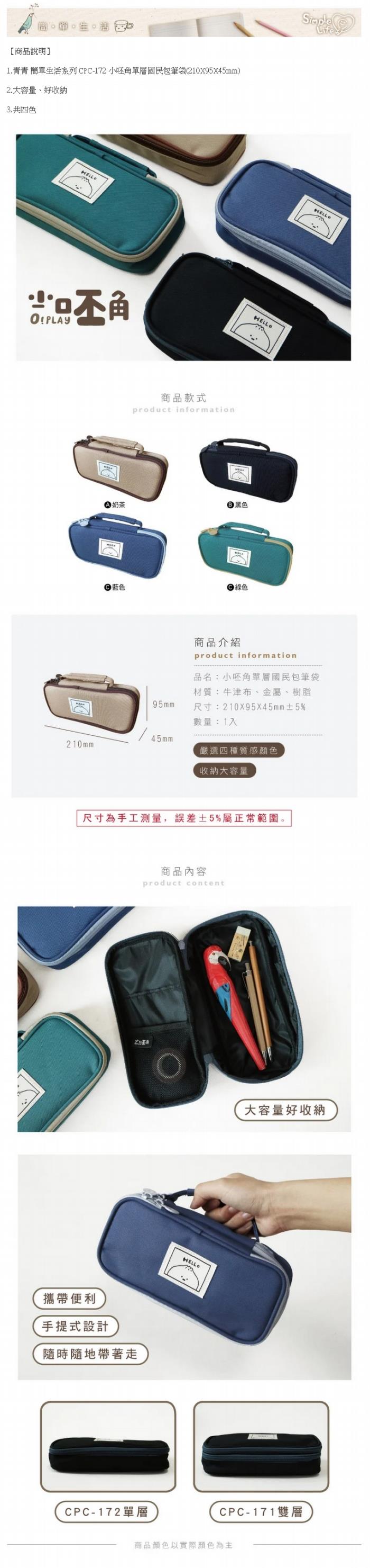◎青青 簡單生活系列 CPC-172 小呸角單層國民包筆袋(210X95X45mm)