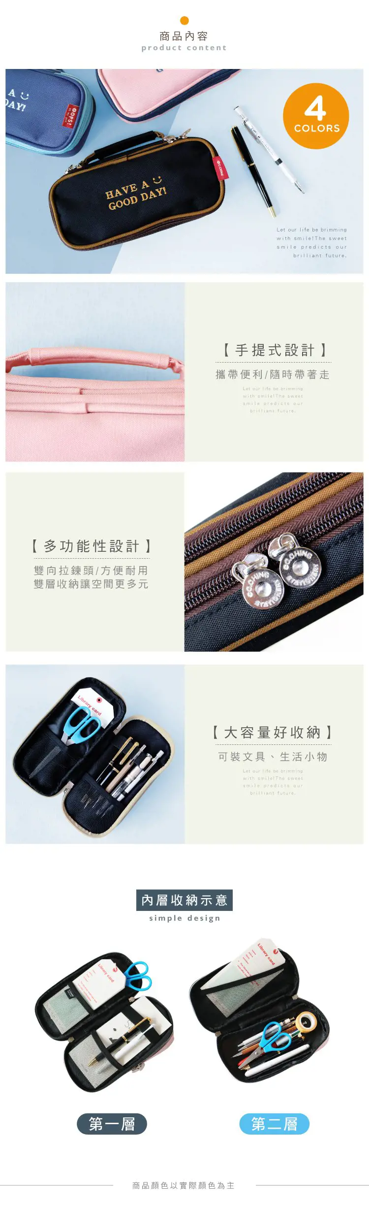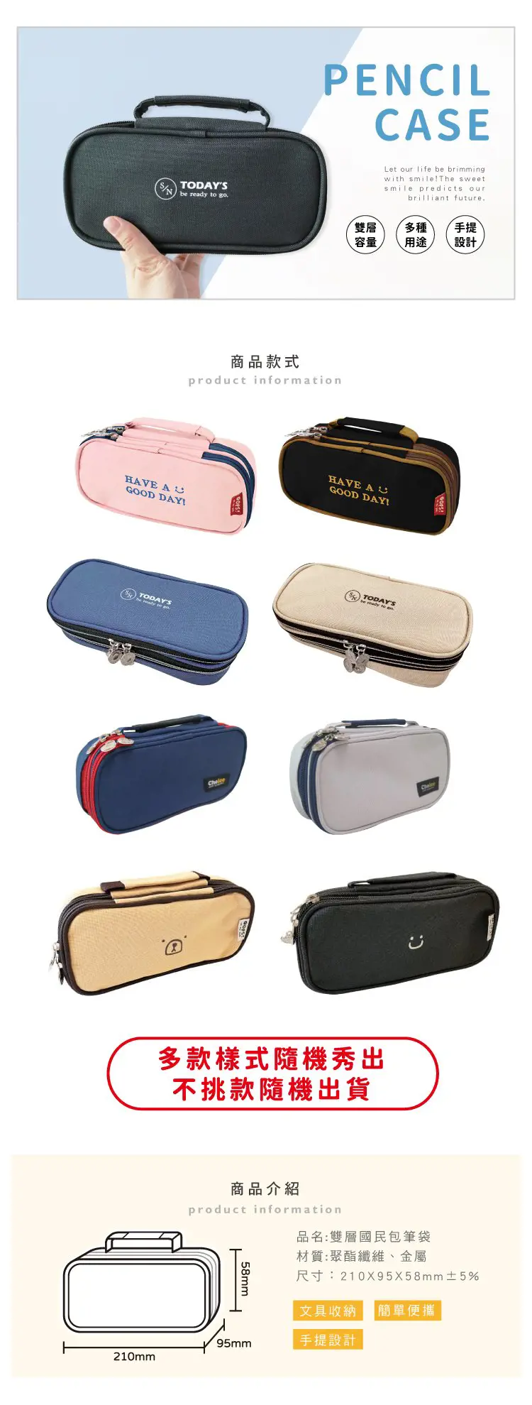 1. 青青 簡單生活系列 CZ-853 雙層國民包筆袋(210X95X58mm±5%)