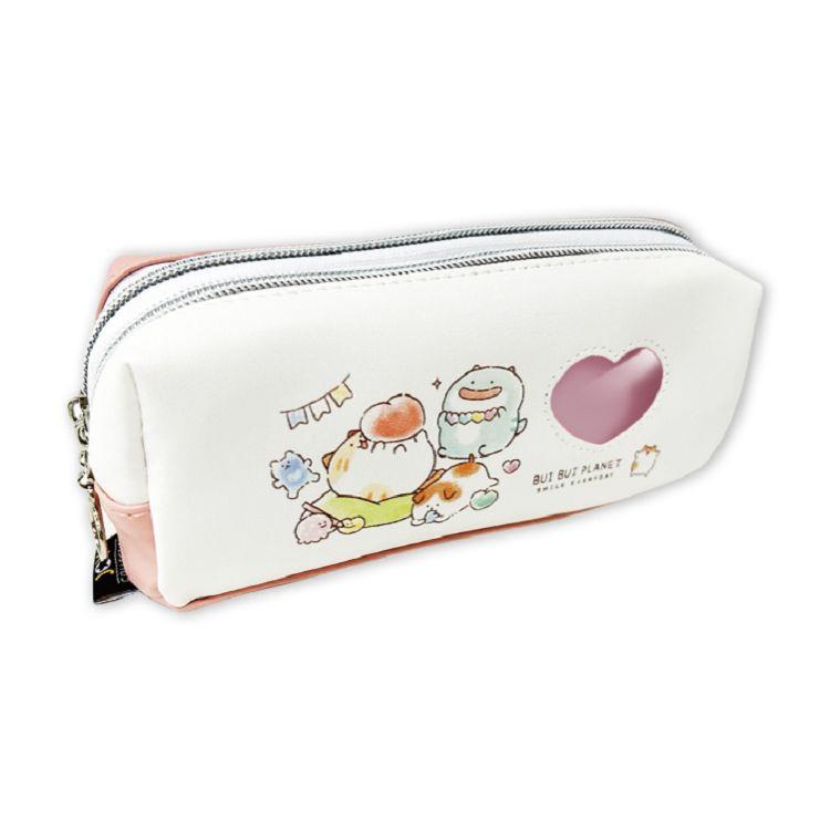 胖胖星球 皮質雙拉鍊筆袋 煙燻粉