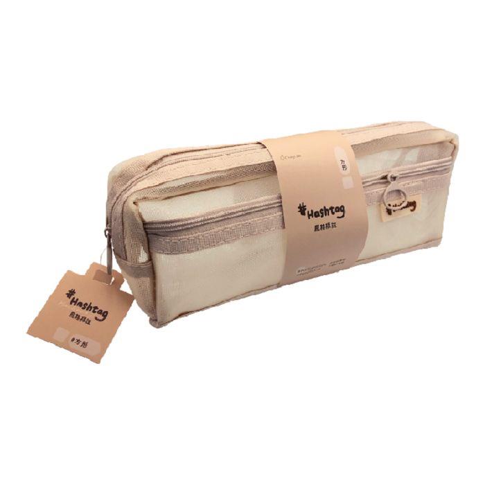 Hashtag方形雙層筆袋(小麥色)