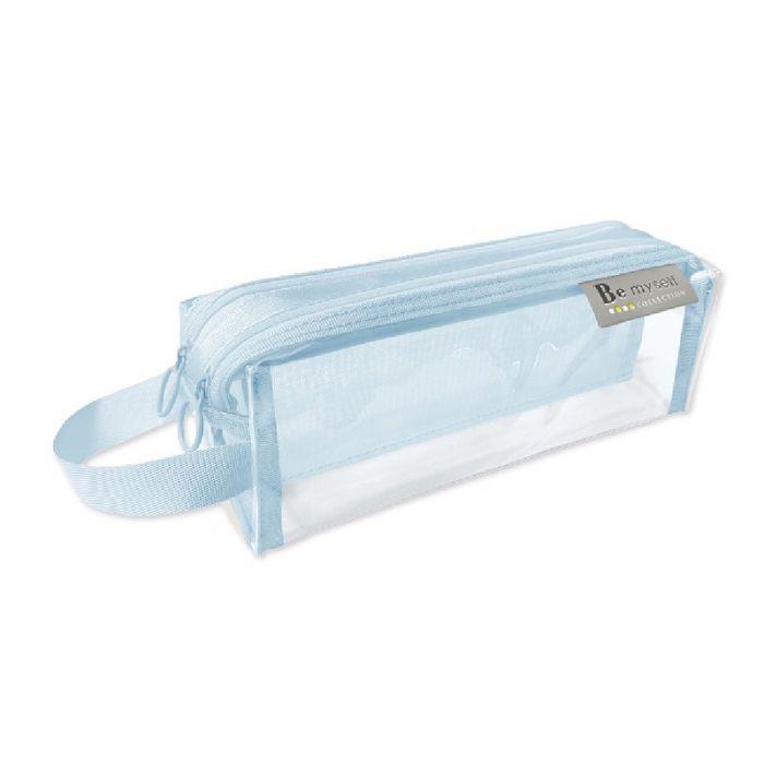 特 BeMyself透明雙拉鏈方筆袋 藍
