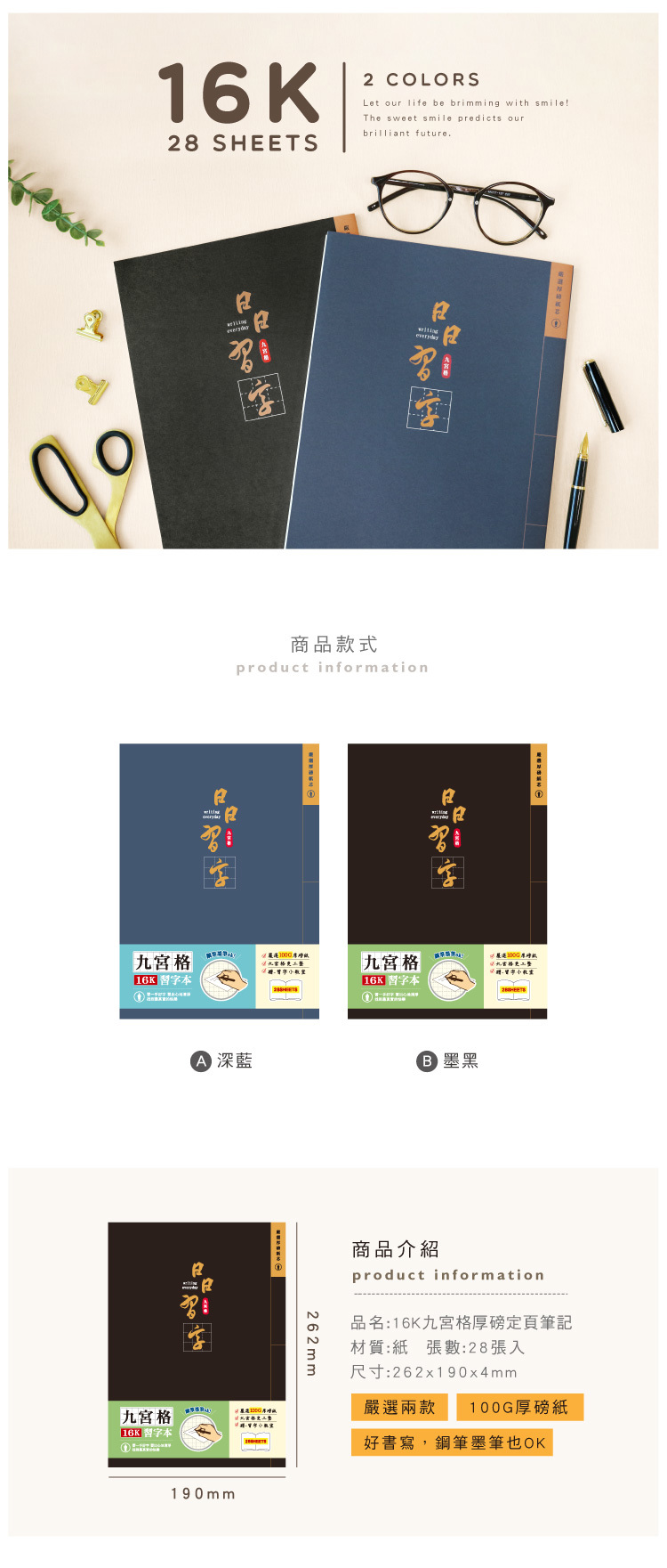 1. 青青 簡單生活系列 CN-16198 16K九宮格厚磅定頁筆記(262X190X4mm)