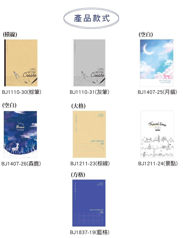 § 內頁有橫線、大格、空白、方格4種款式供您選擇。
