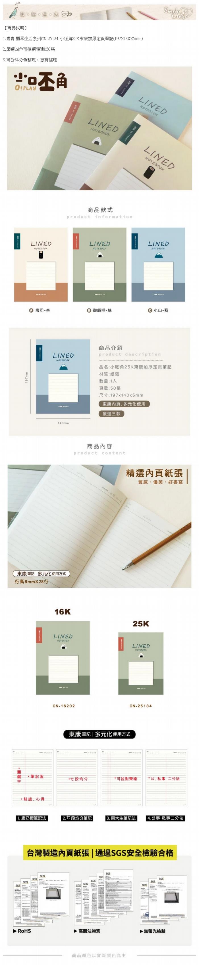 ◎青青 簡單生活系列CN-25134 小呸角25K東康加厚定頁筆記(197X140X5mm)