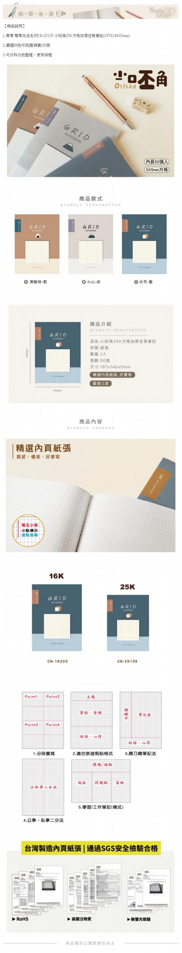 ◎青青 簡單生活系列CN-25135 小呸角25K方格加厚定頁筆記(197X140X5mm)