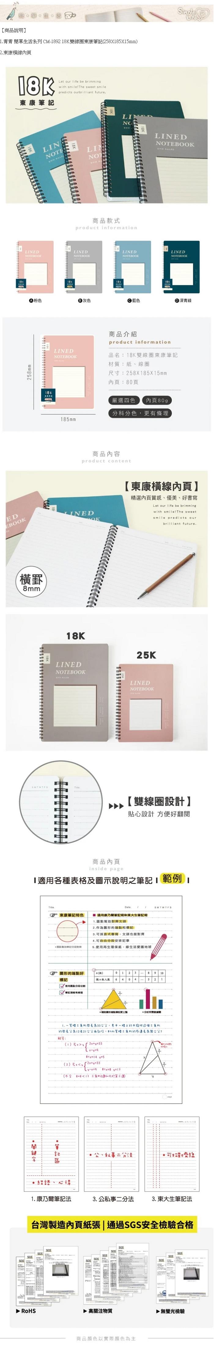 ◎青青 簡單生活系列 CM-1892 18K雙線圈東康筆記(258X185X15mm)