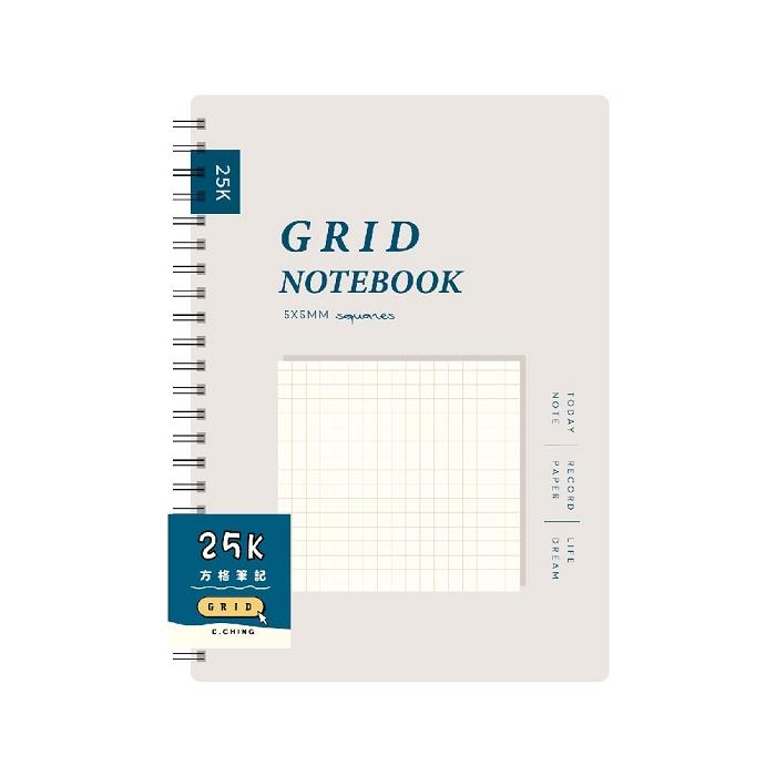 簡單生活-25K雙線圈方格筆記(泥灰色)