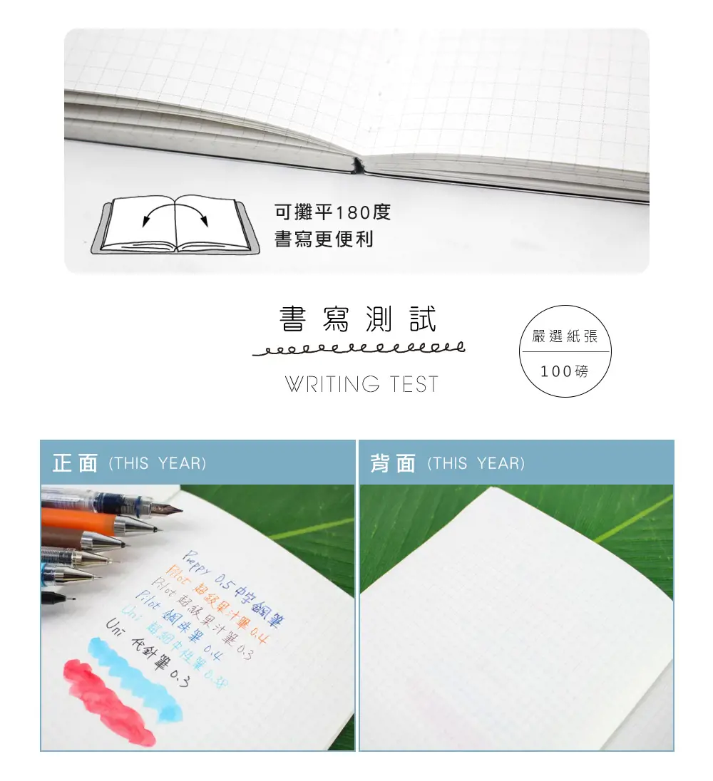 • 採用100磅台灣製優良紙張,適用鋼筆書寫