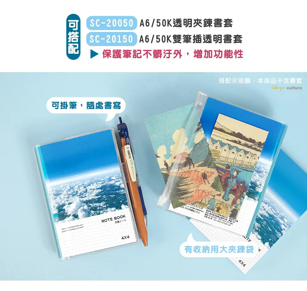 • 可搭配A6/50K書衣、透明書套使用