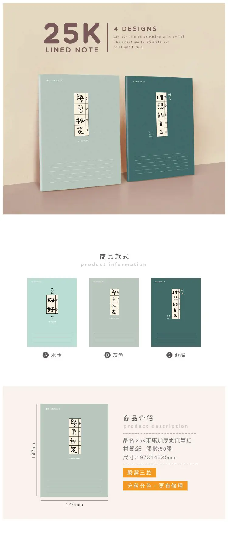 ◎嚴選三色可挑選/頁數:50張