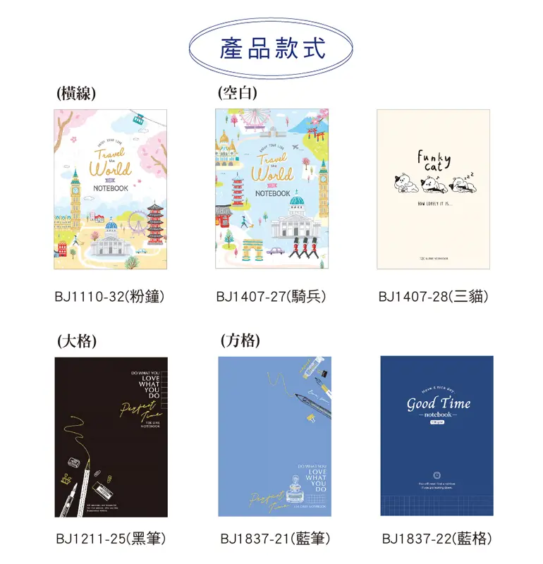 § 有橫線、大格、空白、方格4種格式供您選擇。