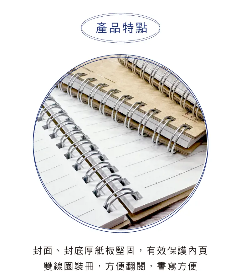 § 雙線圈裝冊,翻閱、書寫方便。
