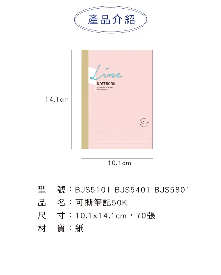 可撕筆記橫線50K-藍線