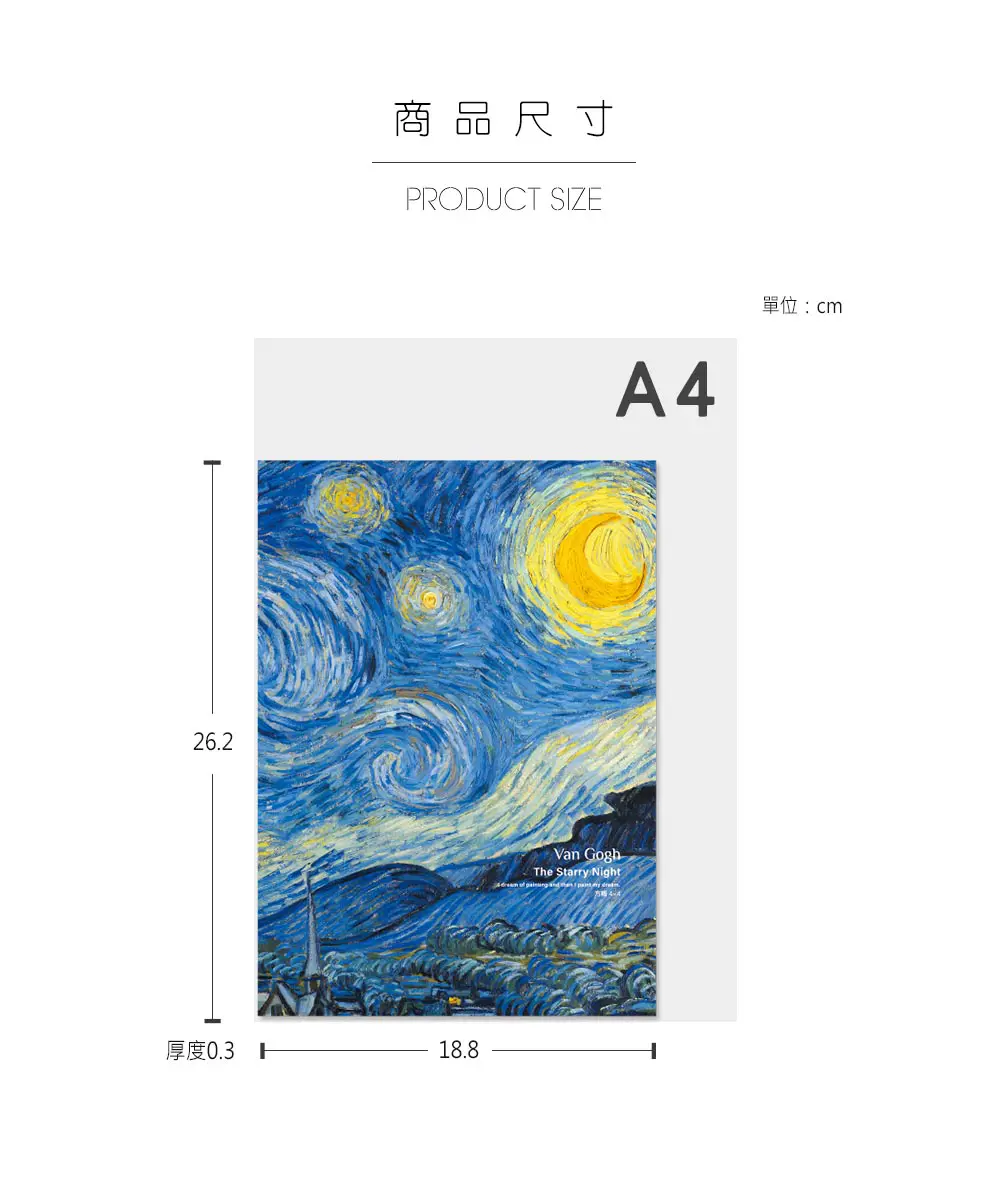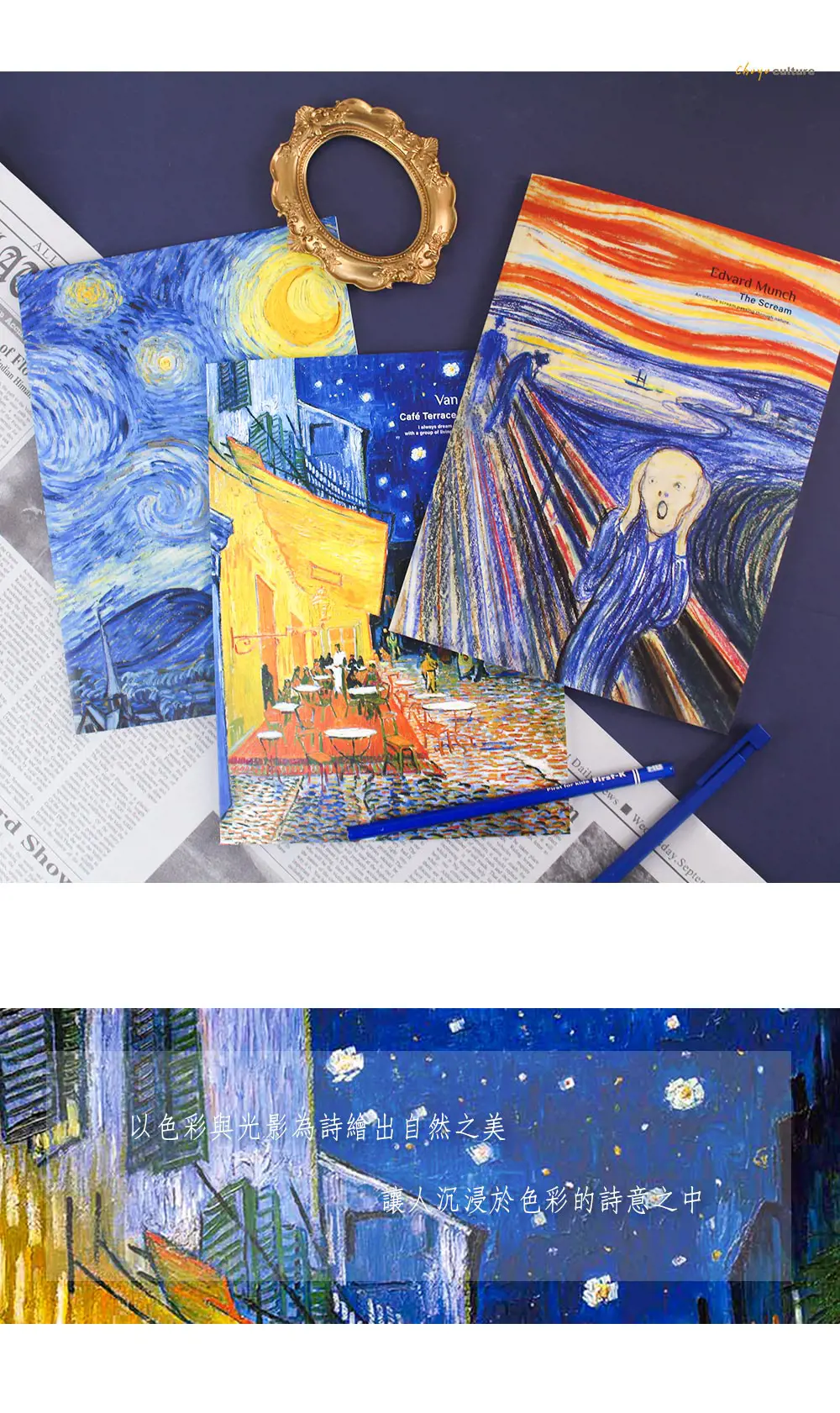 - 封面選用印象派大師-梵谷、孟克的名畫作滿版印刷,一起欣賞名畫之美