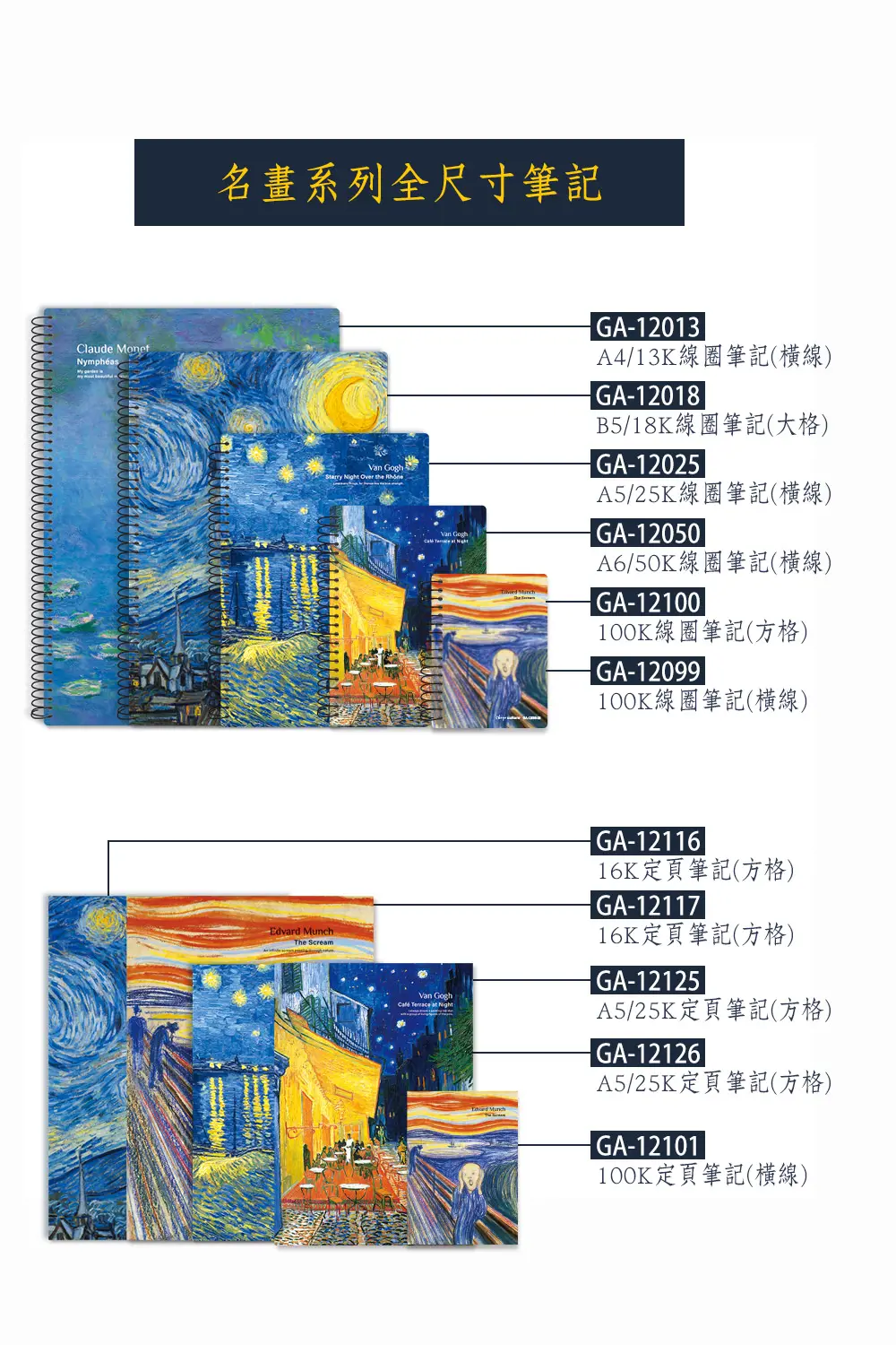 - 封面選用印象派大師-梵谷、孟克的名畫作滿版印刷,一起欣賞名畫之美