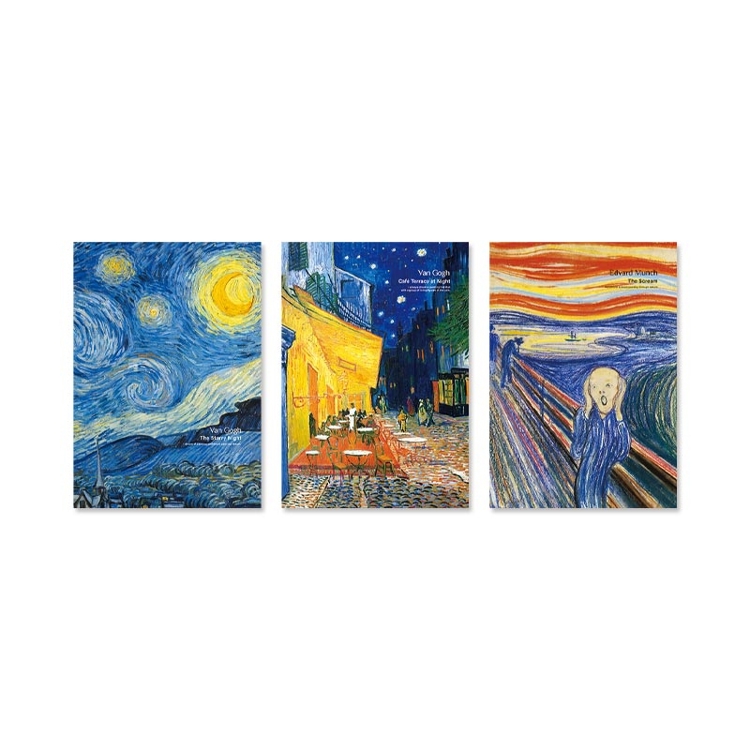 - 封面選用印象派大師-梵谷、孟克的名畫作滿版印刷,一起欣賞名畫之美