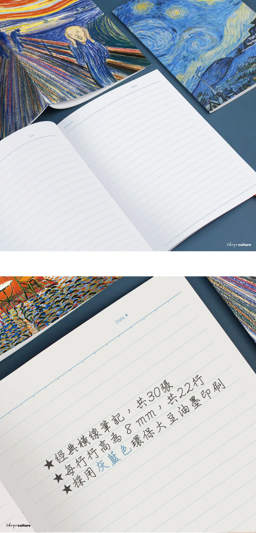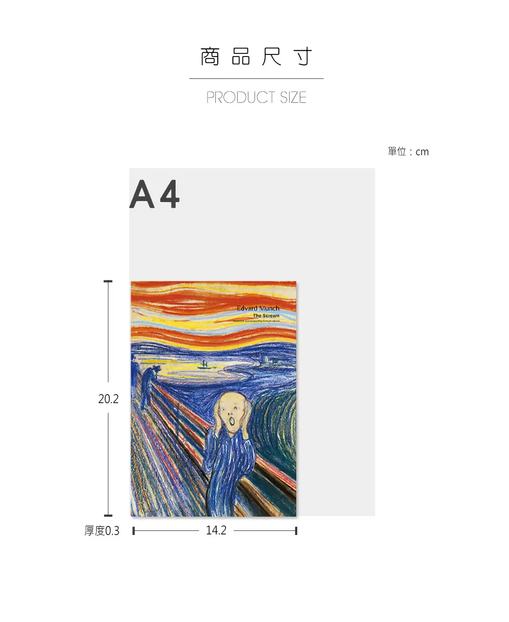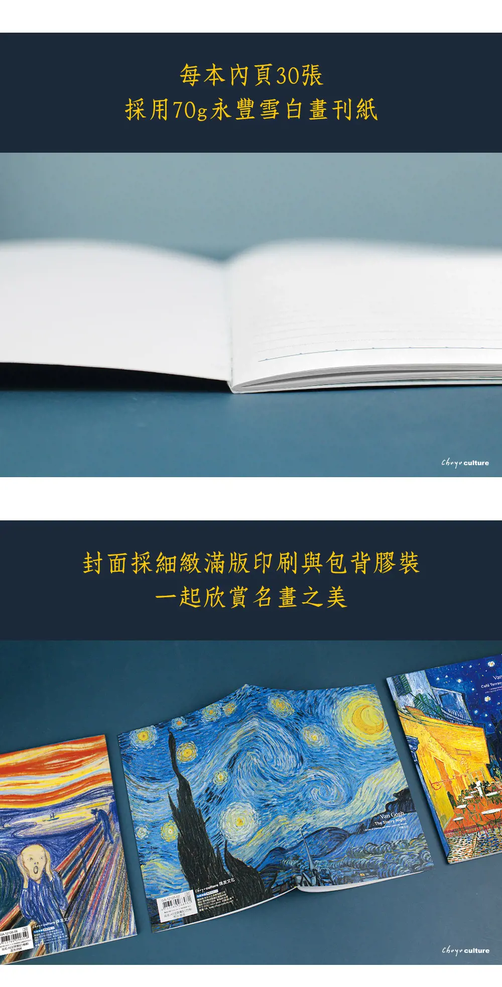 - 封面選用印象派大師-梵谷、孟克的名畫作滿版印刷,一起欣賞名畫之美