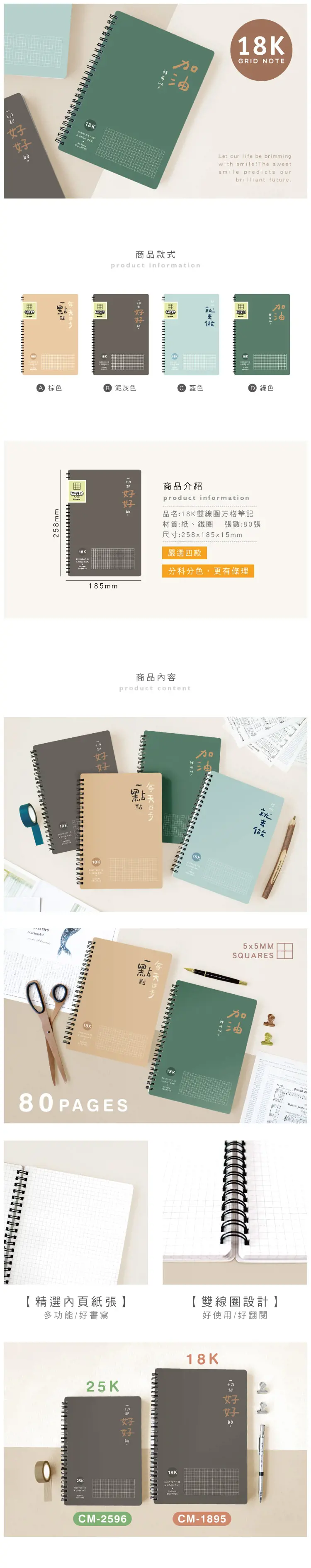 5. 還有其他尺寸 CM-2596 25K雙線圈方格筆記 可選