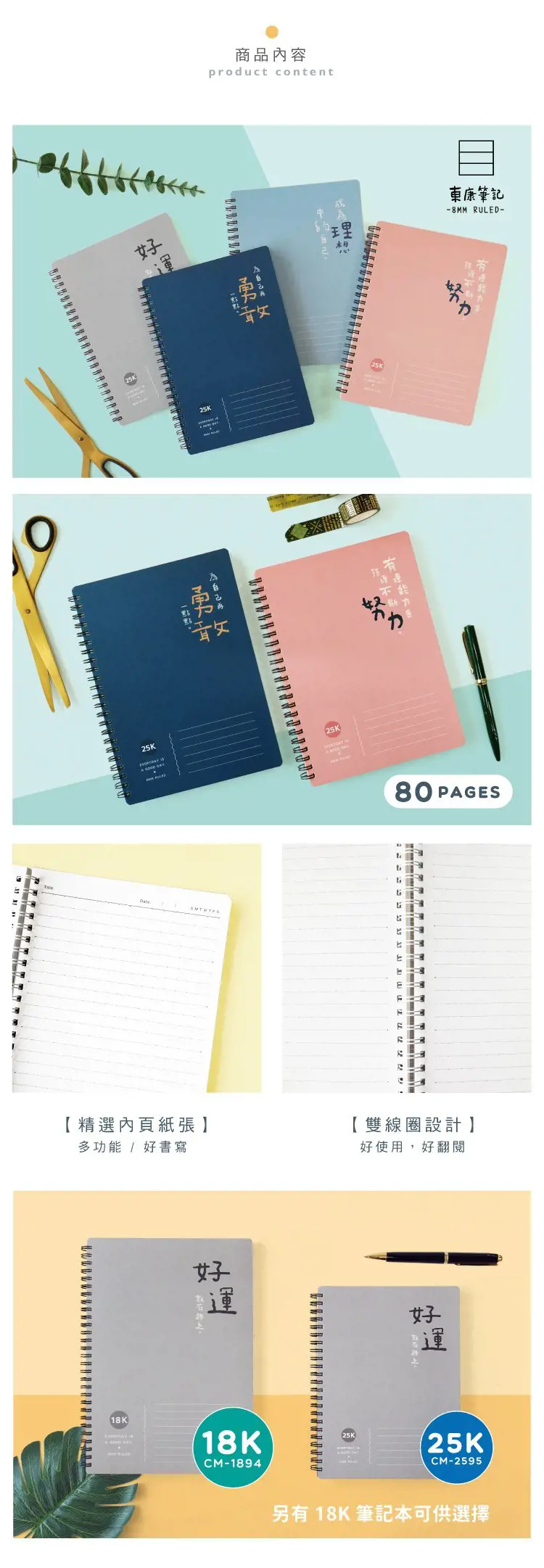 5. 還有其他尺寸 CM-1894 18K雙線圈東康筆記 可選喔!