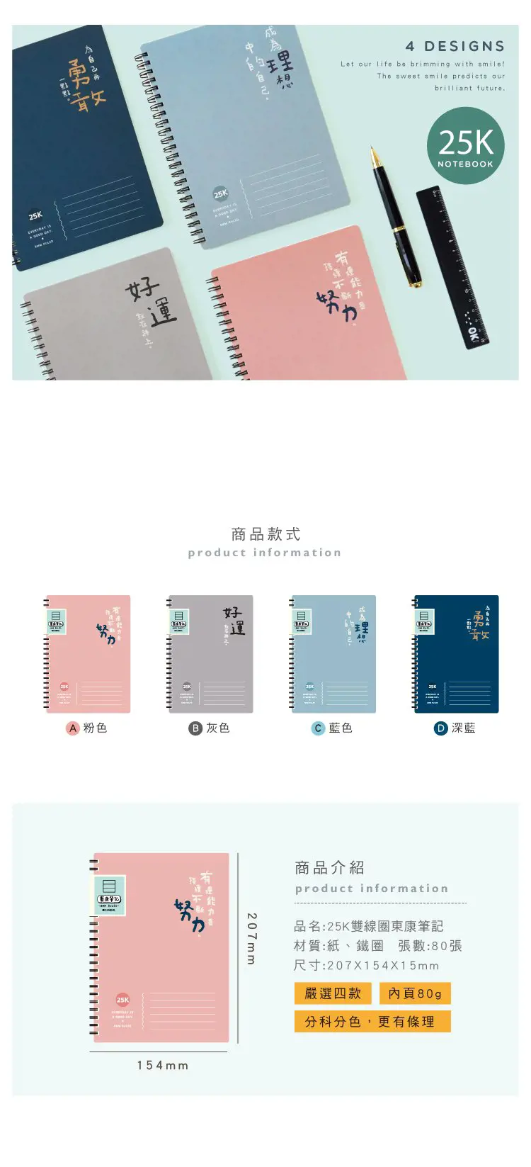 1. 青青 簡單生活系列 CM-2595 25K雙線圈東康筆記(207X154X15mm)
