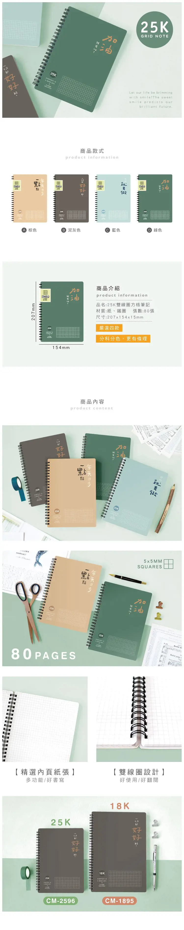 1. 青青 簡單生活系列 CM-2596 25K雙線圈方格筆記(207X154X15mm)