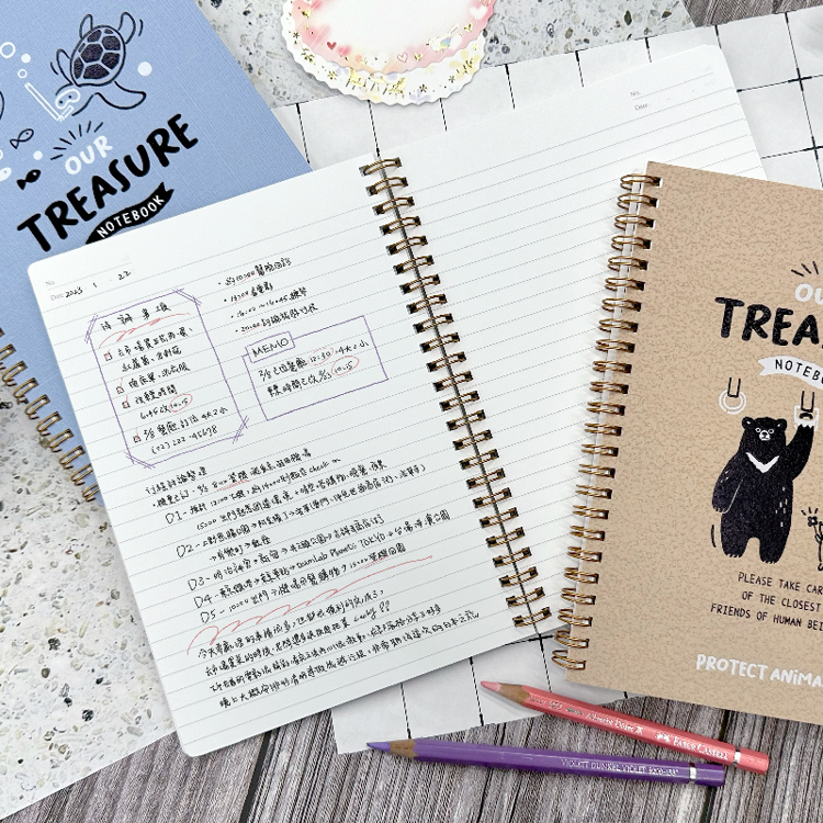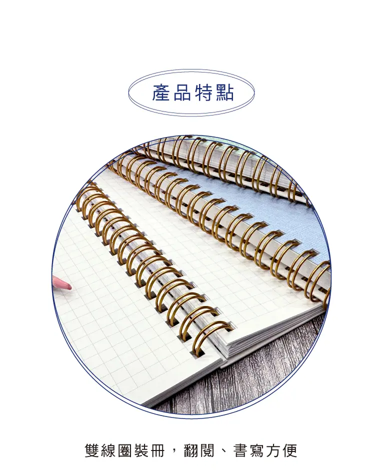 § 雙線圈裝冊,翻閱、書寫方便。
