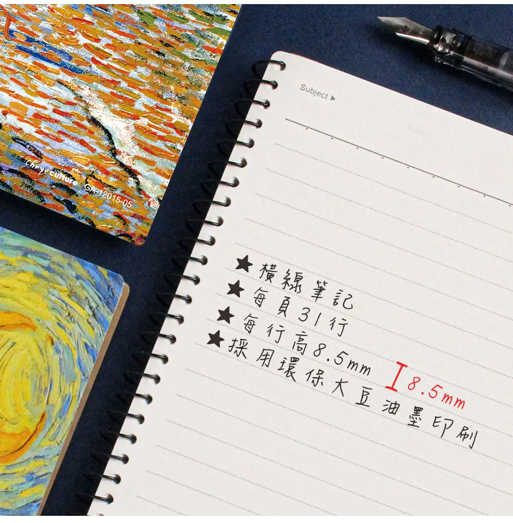 - 每頁31行、每行距8.5mm,採無毒大豆油墨印刷