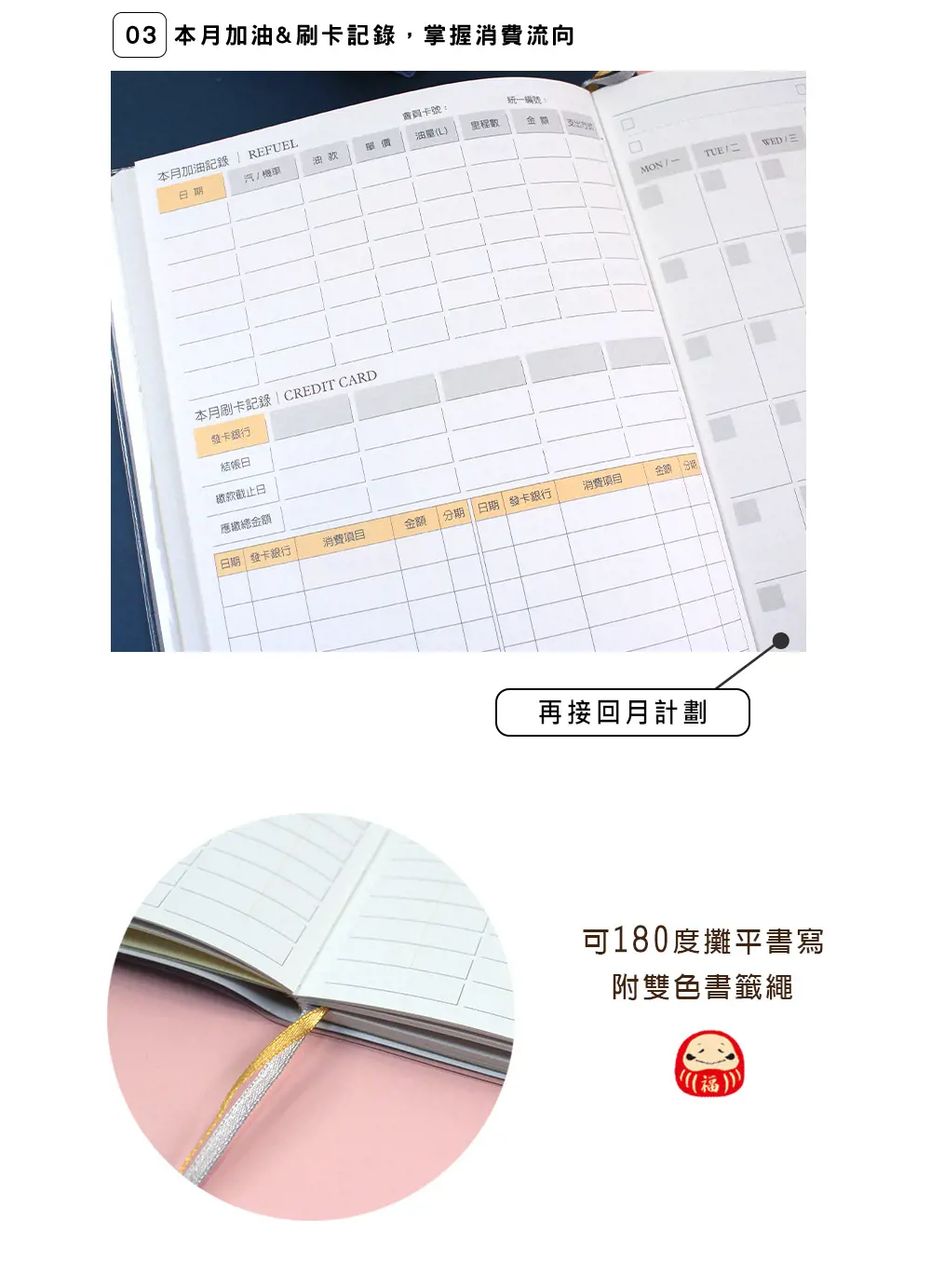 - 循環式記帳內頁,書寫時不用翻來翻去