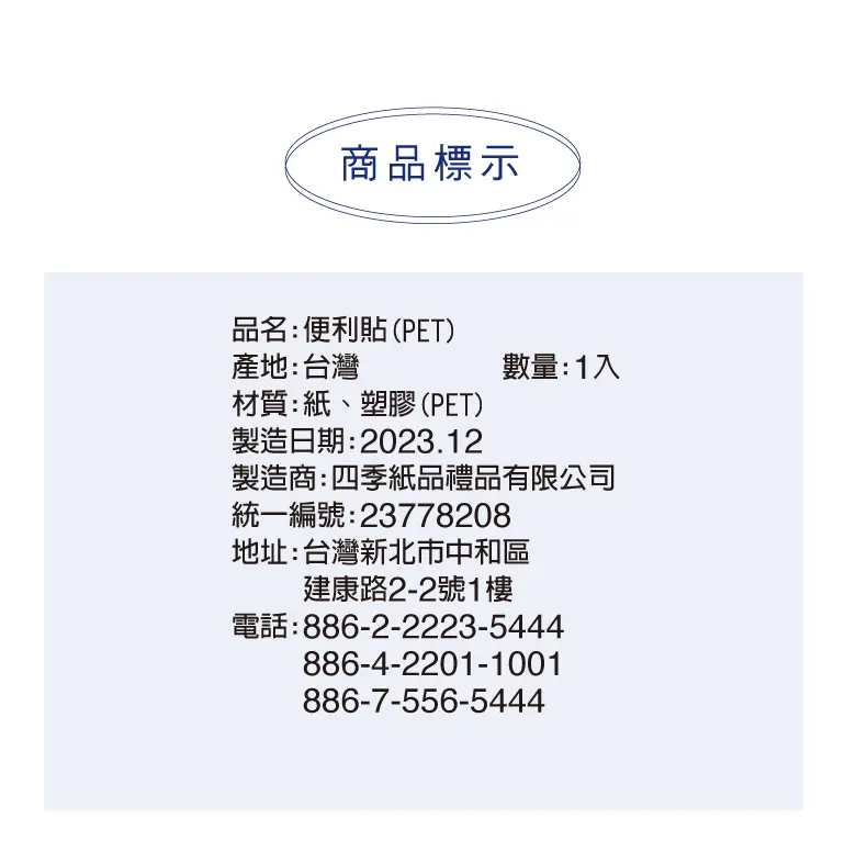 • 材質:紙、塑膠(PET)