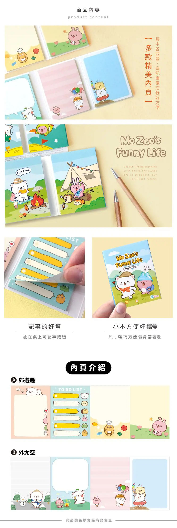 ◎每組便條紙都有4款圖案,每圖各有20張喔~【商品說明】 1. 青青 萌ZOO系列 CC-212 四折便條紙(100X76X12mm)