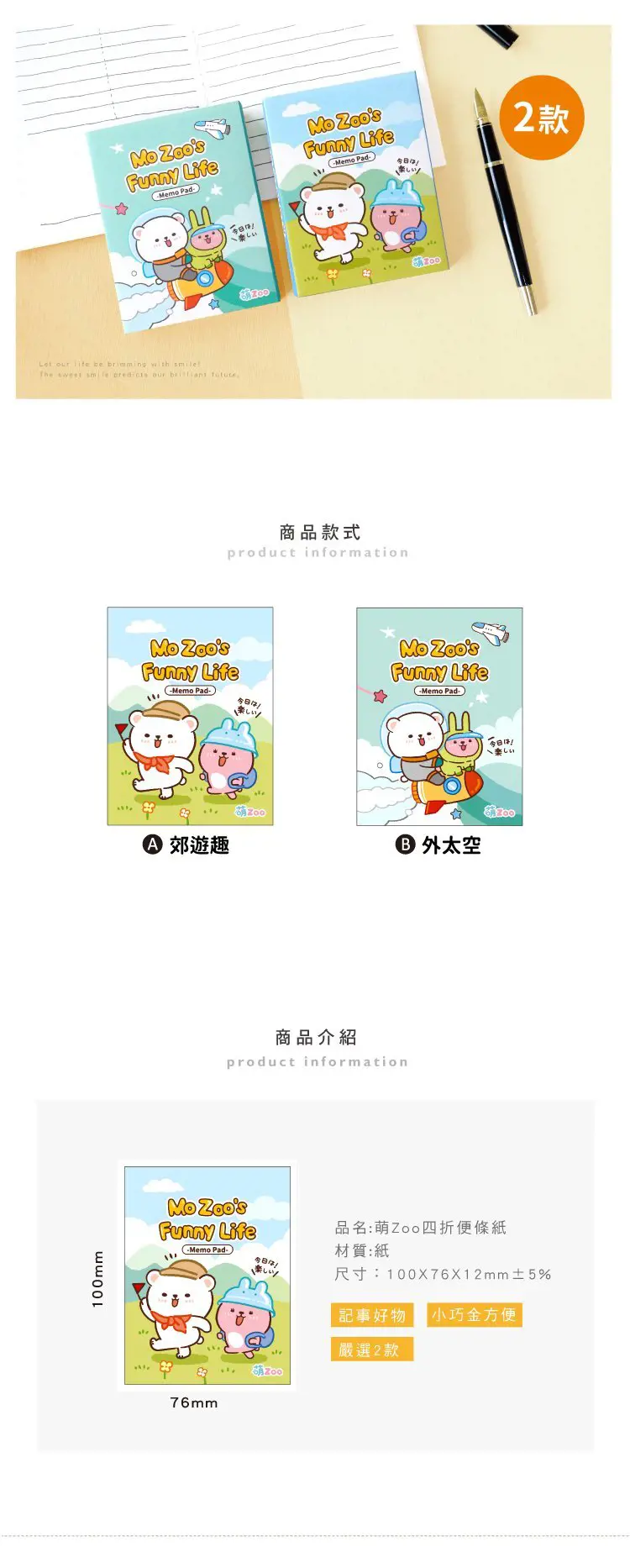 ◎每組便條紙都有4款圖案,每圖各有20張喔~【商品說明】 1. 青青 萌ZOO系列 CC-212 四折便條紙(100X76X12mm)