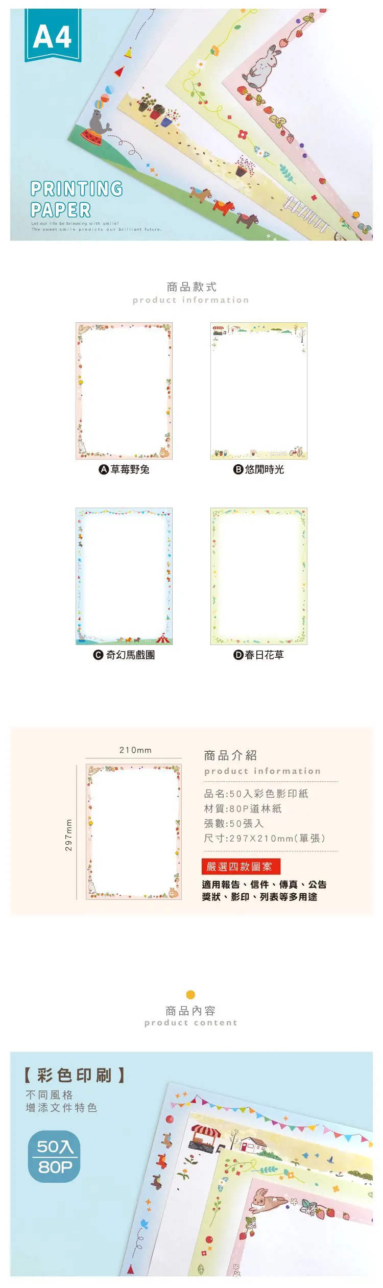 ◎A4紙張尺寸:297X210mm/張數:50張入