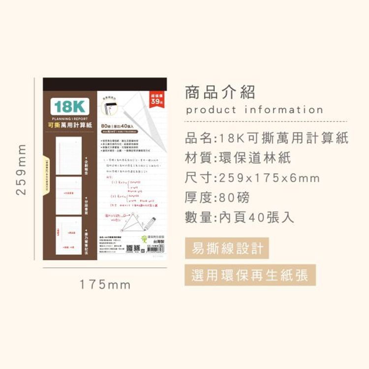 ◎「簡單生活系列」- 18K可撕萬用計算紙/CZ-1069