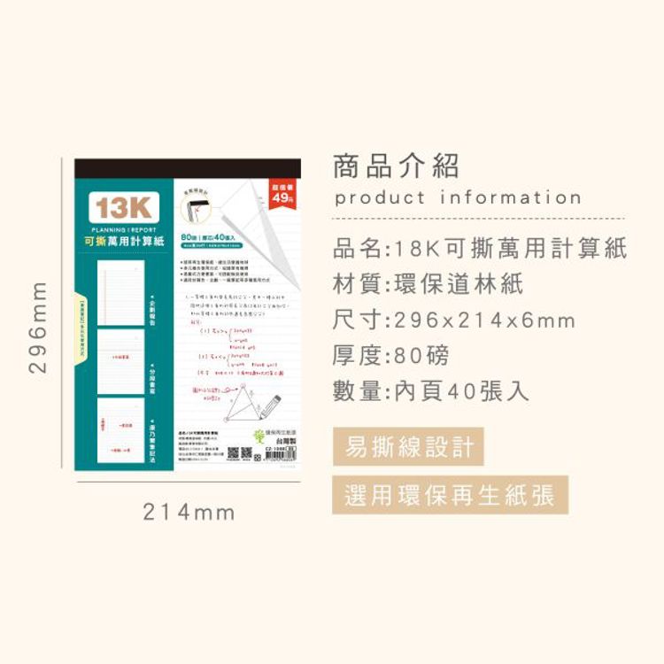 ◎「簡單生活系列」- 13K可撕萬用計算紙/CZ-1068