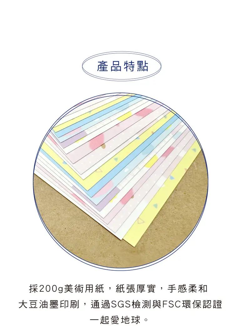 § 200g美術用紙,紙張厚實,手感柔和。