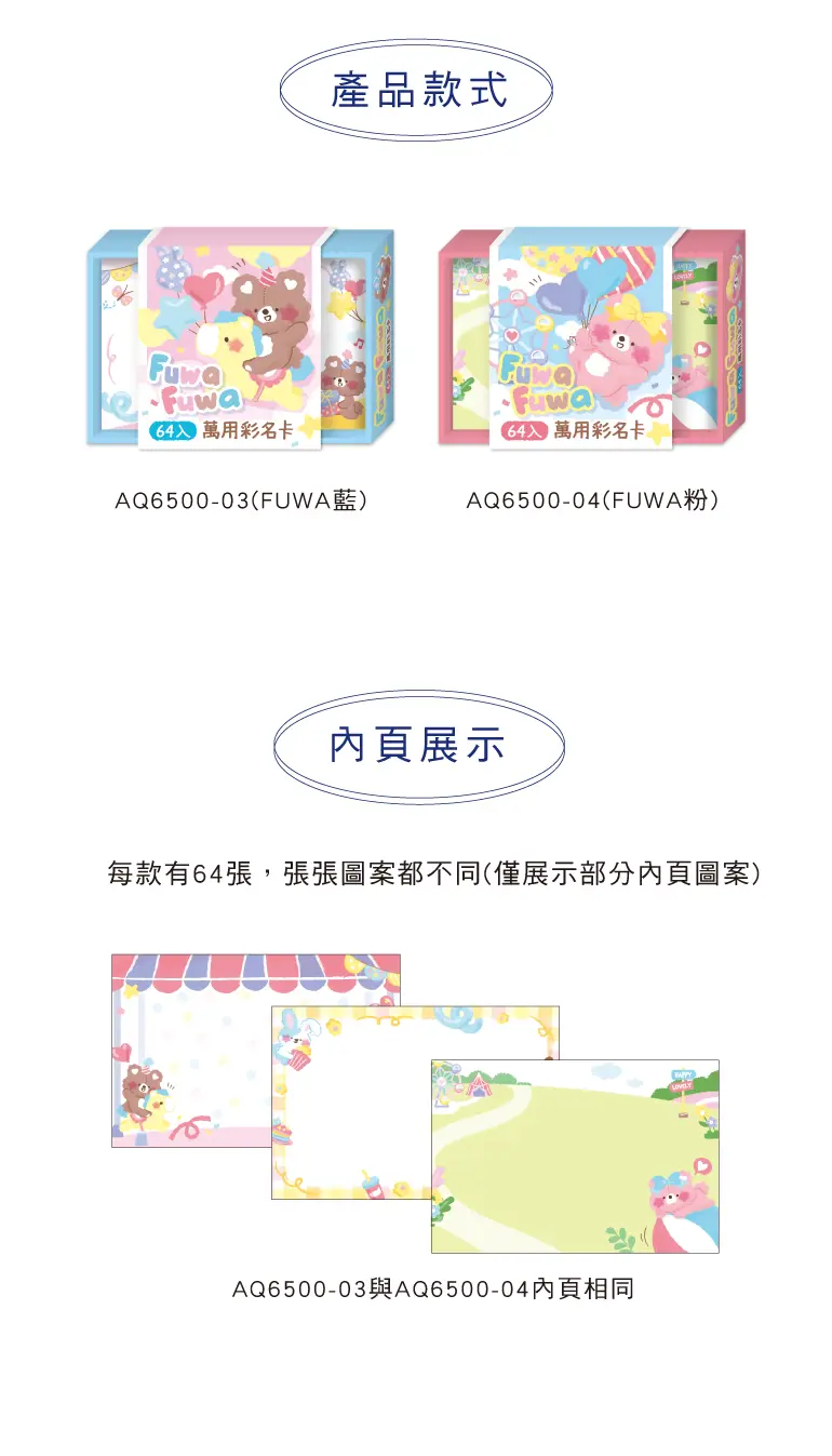 § 規格:10.5x7x2.3cm,每款有64張不同圖案,2種款式。