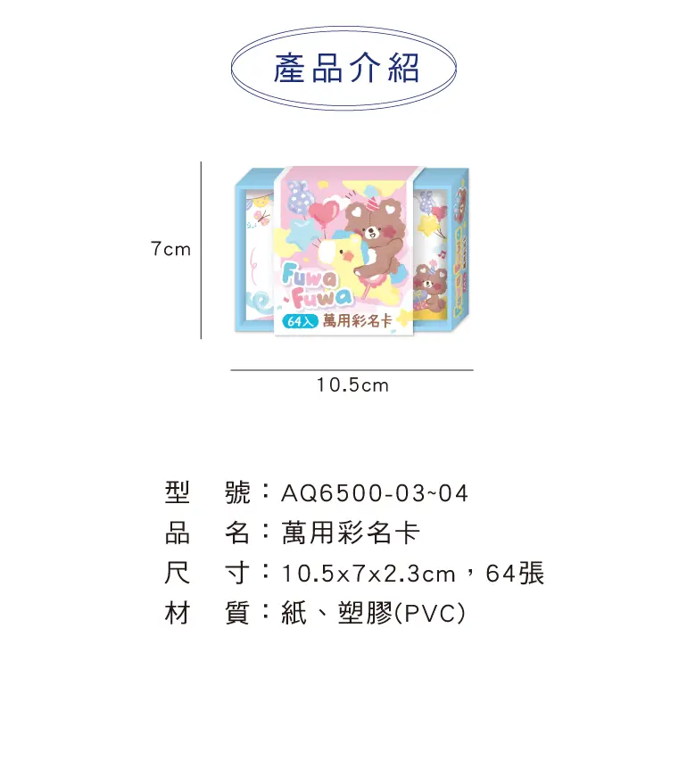 § 規格:10.5x7x2.3cm,每款有64張不同圖案,2種款式。