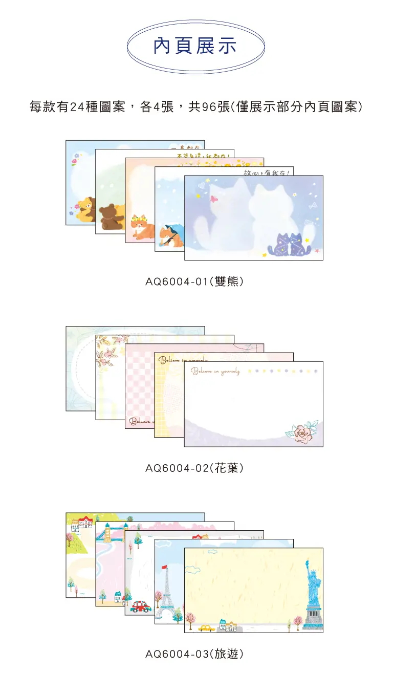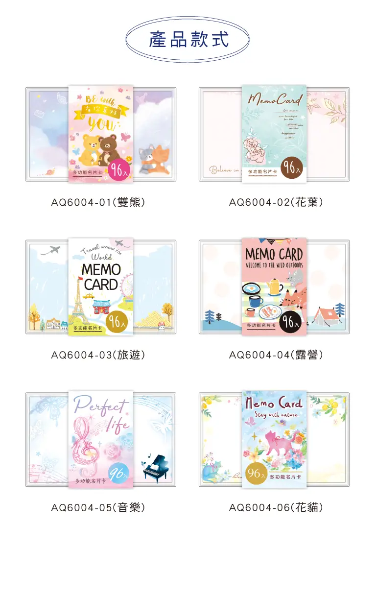 § 規格:9.8 x6.2x2.5cm,每款24圖各4張,共96張,6種款式。