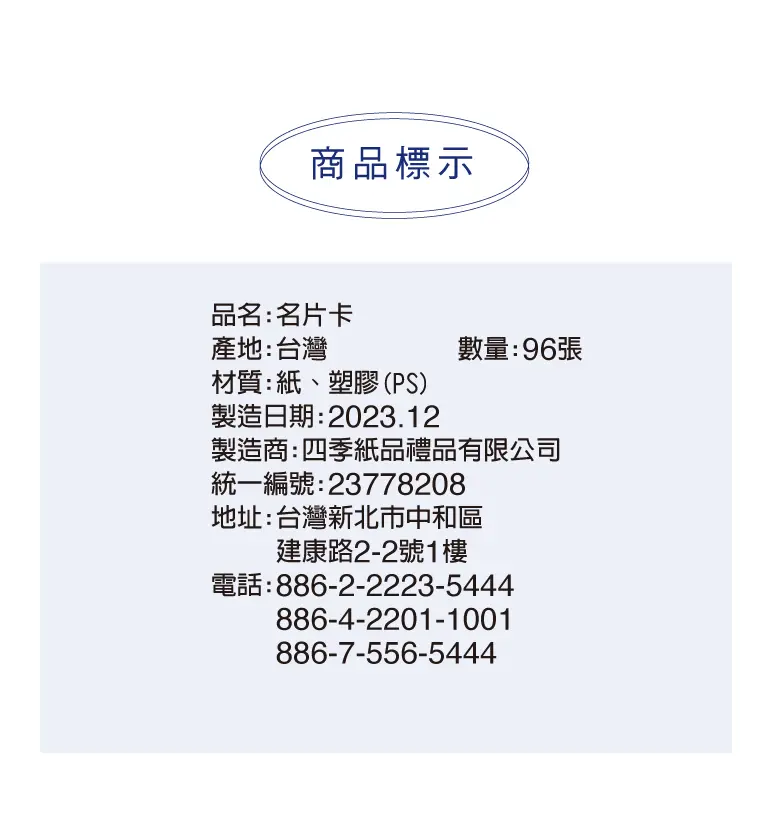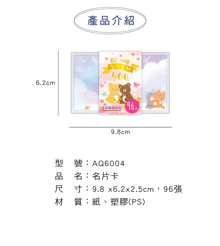 • 尺寸:9.8 x6.2x2.5cm,96張