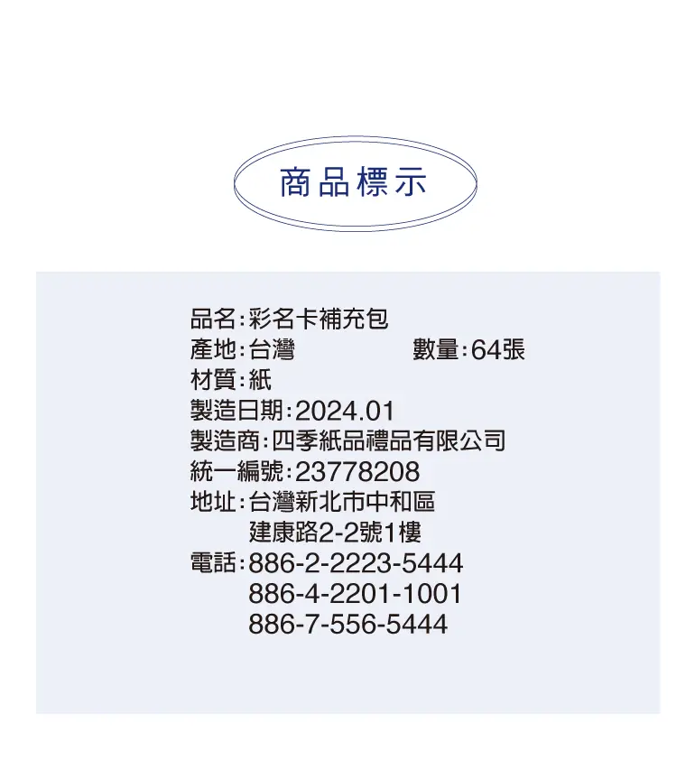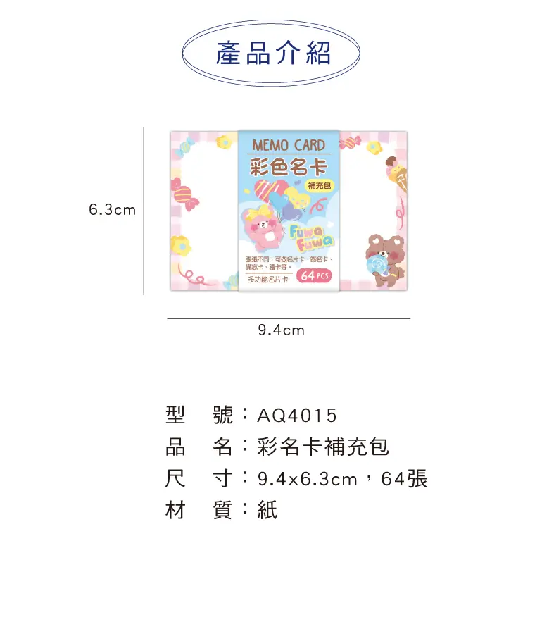 § 規格:9.4x6.3cm,每款有64張不同圖案,4種款式。
