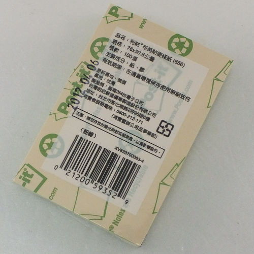 可重複黏貼、表面可書寫、撕下不傷文件。每本100張。