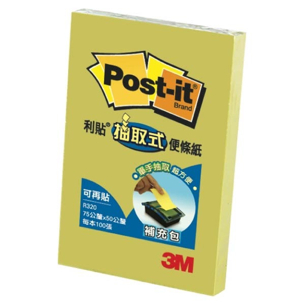 3M 狠黏抽取式便條紙-canaryyellow(R320S)