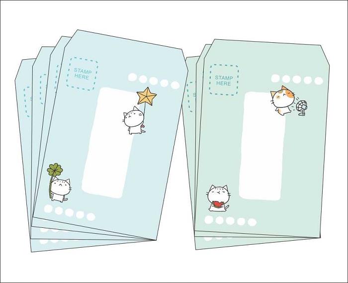 星星貓短中式信封(淡藍淡綠)